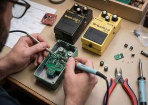 둘째는 ‘부품의 보물창고’를 발견한 것이다. 당시 미국에서는 이미 생산이 중단되어 구하기 힘들어진 희귀 전자 부품들이 일본의 전자 부품 창고에는 산더미처럼 쌓여 있었다. 특히 그는 Ibanez TS9 Tube Screamer가 오리지널 TS808에 비해 소리가 얇고 거칠어진 원인을 기술적으로 규명했다. 제조사가 원가 절감과 수급 편의를 위해 핵심 오피앰프(Op-Amp)를 JRC4558D에서 다른 칩셋으로 변경했기 때문이었다. Mike는 아키하바라의 부품상들을 뒤져 오리지널 JRC4558D 칩을 대량으로 확보했고, TS9을 TS808 사양으로 개조(Mod)하는 작업을 시작했다. 이것이 전설의 시작이었다.
